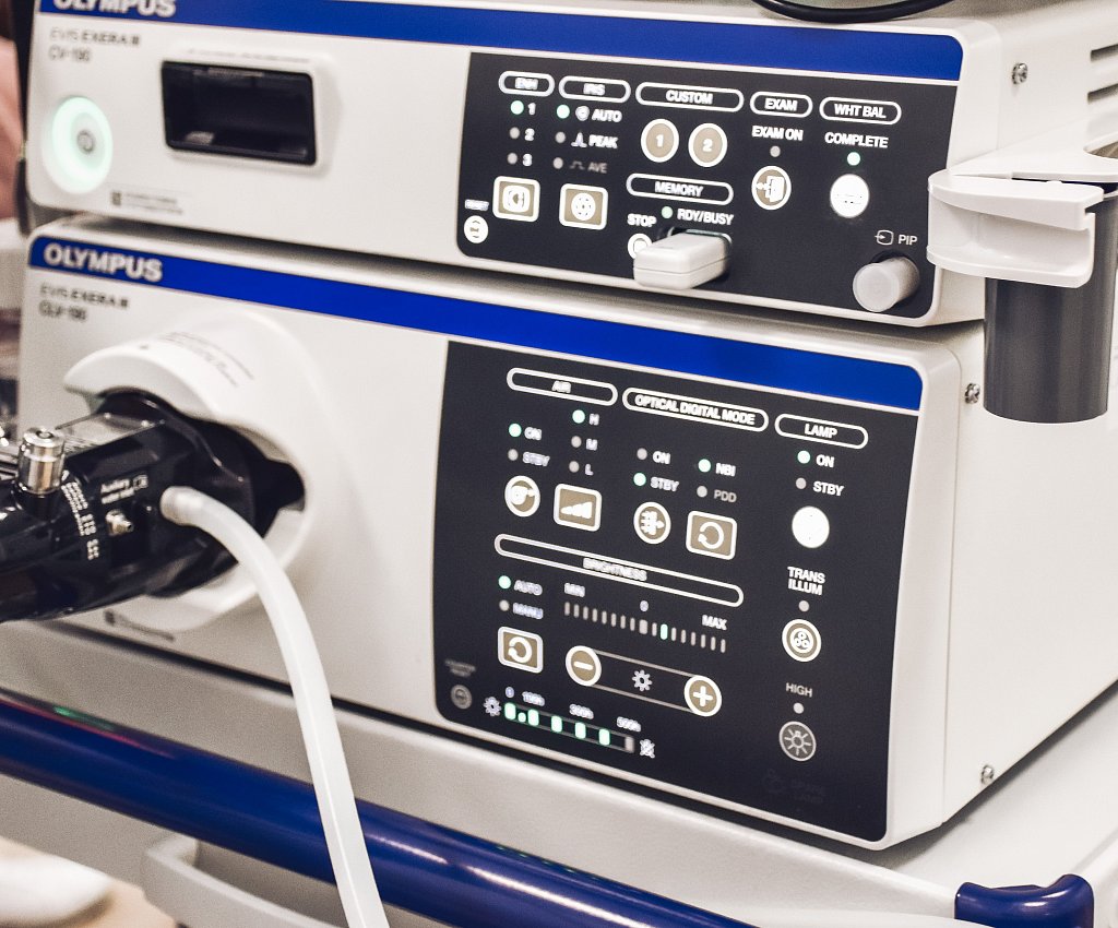 1. Оборудование экспертного класса. Эндоскопы и дуоденоскопы компаний Olympus (Япония) и Pentax (Япония) позволяют изучить мельчайшие детали органов и структур организма. Благодаря инновационной аппаратуре врачи диагностируют заболевания на ранних этапах и вовремя берут их под контроль. Также эксперты используют автоматизированную систему очистки приборов, которая удаляет загрязнения даже из труднодоступных мест.