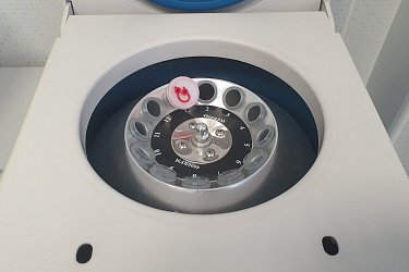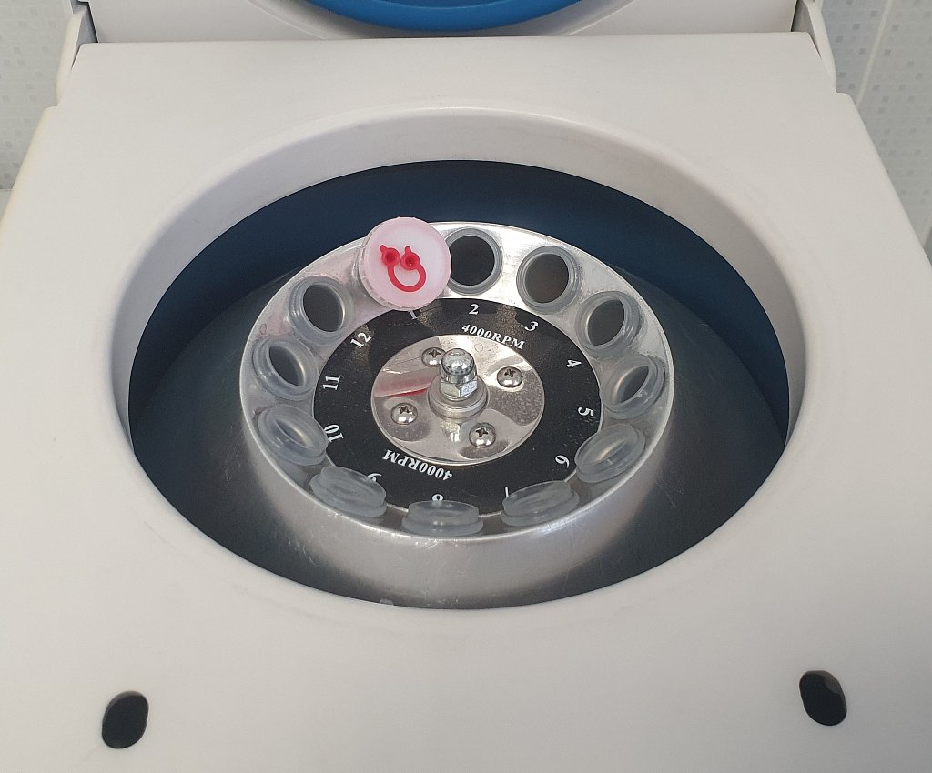 2. Центрифугирование. Набранный сосуд размещается в аппарате-центрифуге. Его работа основана на применении центробежной силы, которая помогает разделить кровь на фракции. Одновременно с этим плазма обогащается тромбоцитами, которые выбрасывают факторы роста, что стимулирует рост стволовых клеток поврежденных тканей.